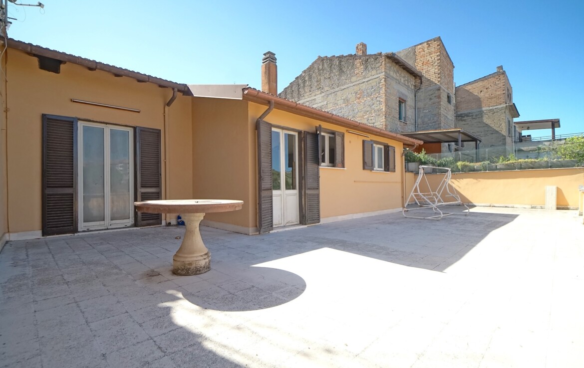 VIA G. AMENDOLA 21 – Appartamento indipendente di oltre 150 mq calpestabili, su unico livello con terrazzo panoramico di circa 90 mq in pieno centro composto da: ingresso indipendente con ampio vano scala privato, ingresso/disimpegno, salone doppio, 3 camere matrimoniali di cui una di oltre 28 mq, cucina abitabile, tinello con camino, bagno doppio finestrato, terrazzo panoramico a livello e 4 piccoli balconi fronte strada. Completa la proprietà una cantina carrabile di circa 60 mq con accesso dall’adiacente via S. Giorgio ed un sottotetto praticabile di oltre 50 mq. Riscaldamento autonomo con caldaia a basamento a gas, infissi in legno vetro singolo e in alluminio doppio vetro (misti), persiane in legno, pavimenti in ceramica, termosifoni, soffitti alti, sottotetto praticabile, ingresso indipendente e vano scala autonomo.