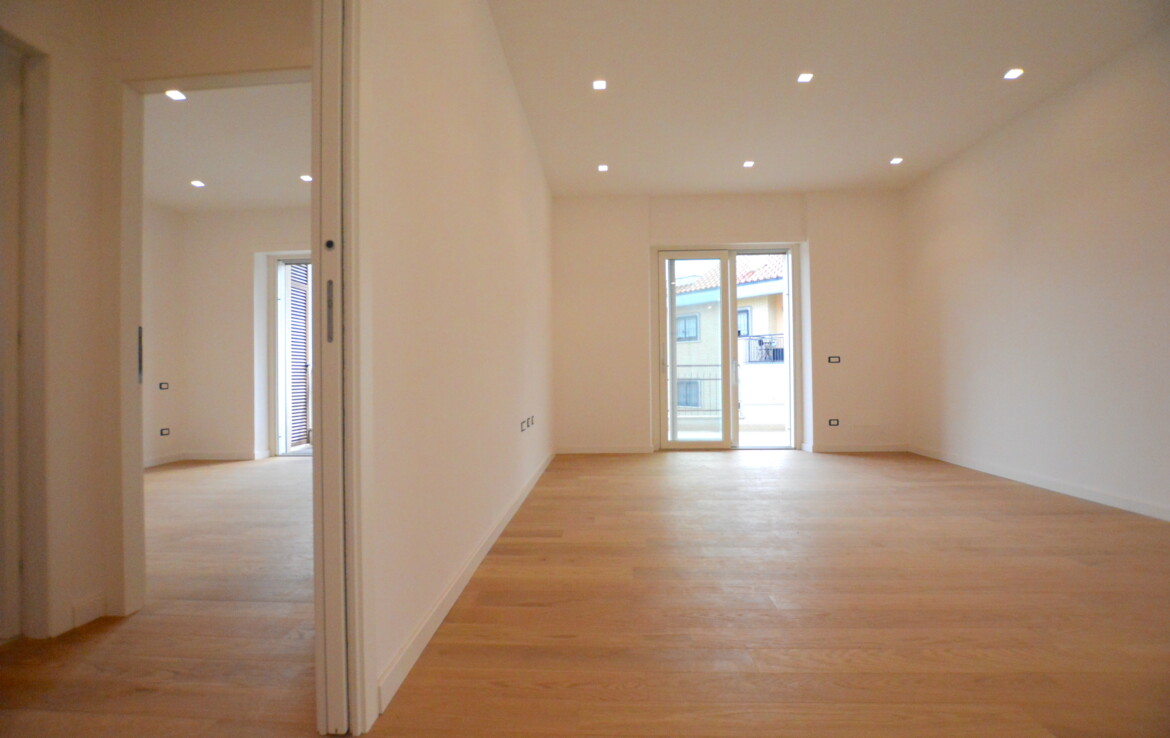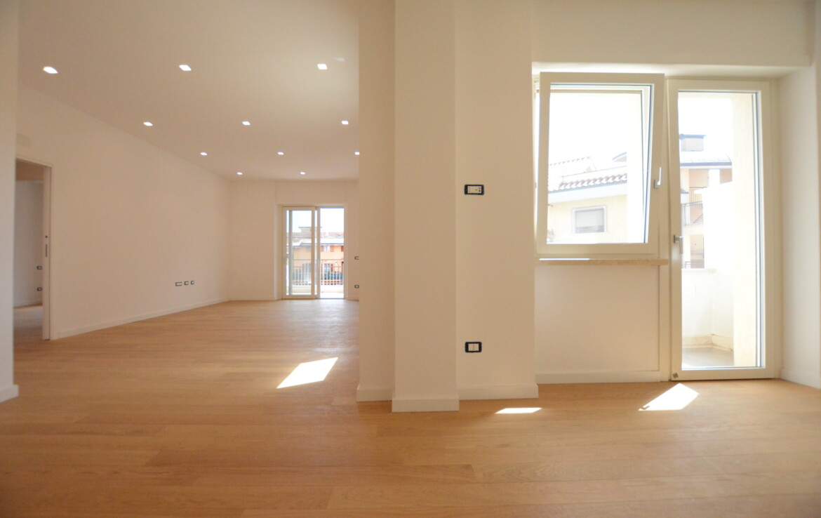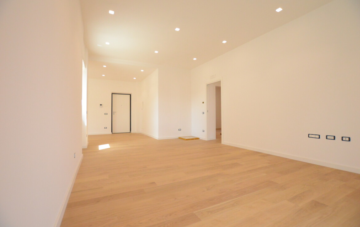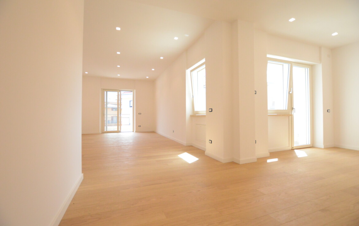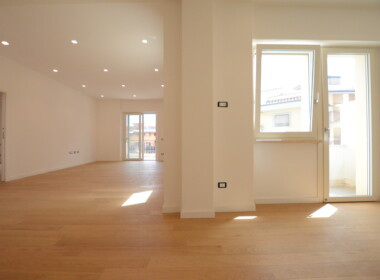 VIA MADONNA DI LORETO – Elegante appartamento di nuova costruzione al primo piano di piccolo edificio storico integralmente ristrutturato in pieno centro cittadino. L’immobile misura oltre 90 mq netti coperti oltre a splendidi spazi esterni tra cui una terrazza esposta a SUD/EST con vista sulle montagne ed ottima riservatezza. L’appartamento è composto da una zona giorno di circa 50 mq con cucina abitabile a vista ed accesso al terrazzo ed al balcone di servizio antistante la cucina; la zona notte è composta da due ampie camere da letto matrimoniali di cui una con bagno padronale ed un secondo bagno completo finestrato. Completa la proprietà un posto auto coperto in autorimessa collettiva adiacente allo stabile.