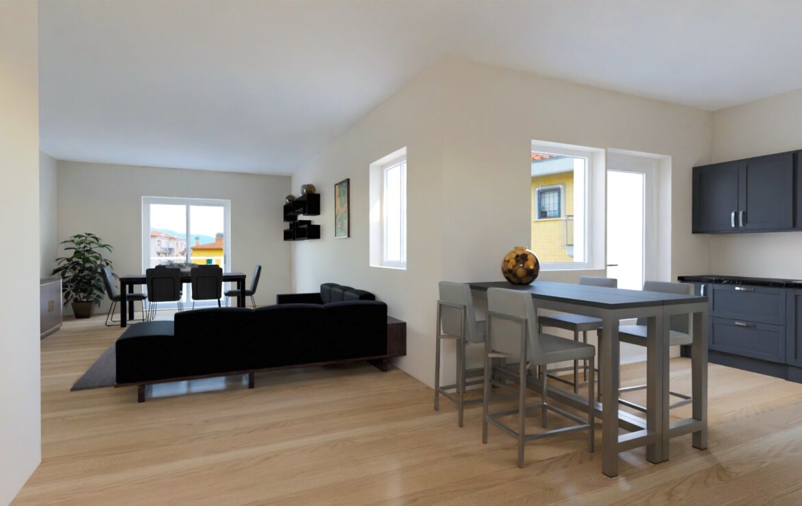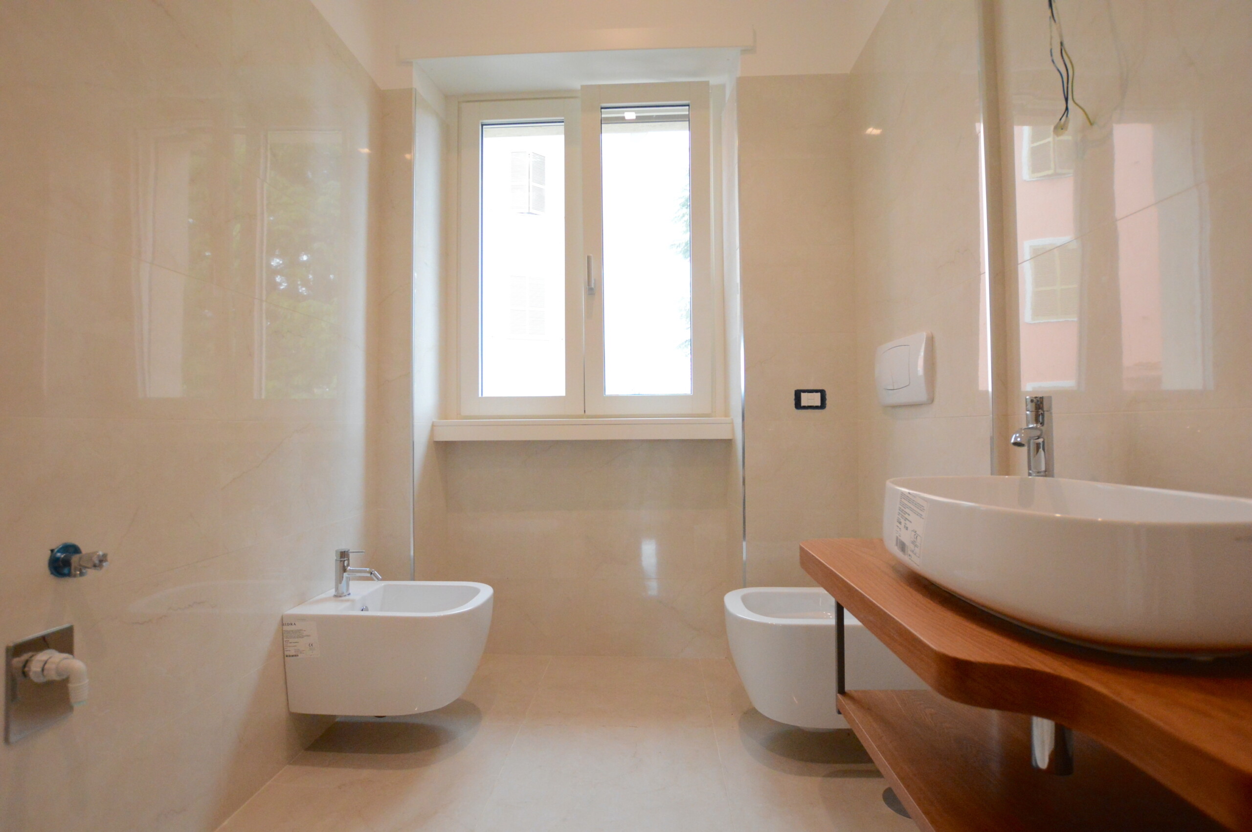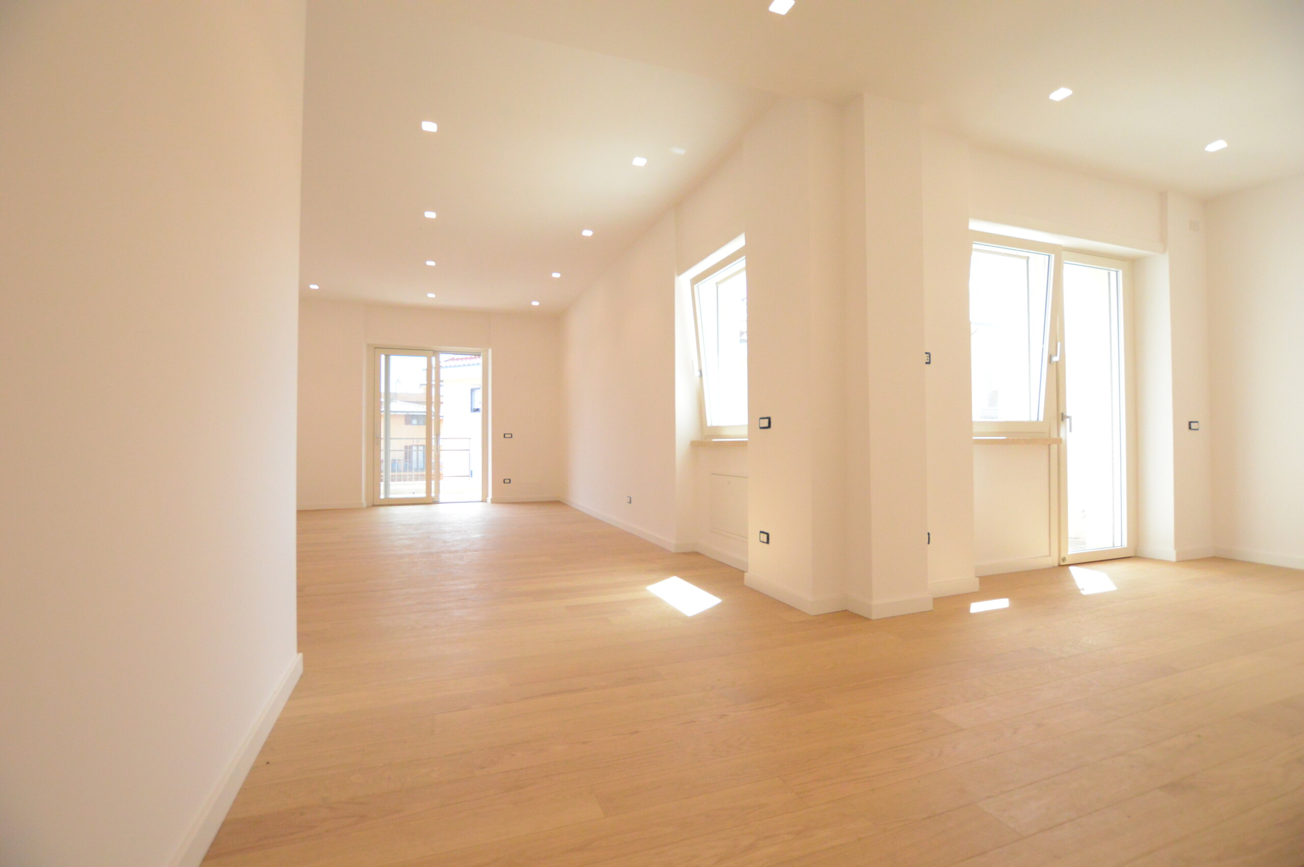 VIA MADONNA DI LORETO – Elegante appartamento di nuova costruzione al primo piano di piccolo edificio storico integralmente ristrutturato in pieno centro cittadino. L’immobile misura oltre 90 mq netti coperti oltre a splendidi spazi esterni tra cui una terrazza esposta a SUD/EST con vista sulle montagne ed ottima riservatezza. L’appartamento è composto da una zona giorno di circa 50 mq con cucina abitabile a vista ed accesso al terrazzo ed al balcone di servizio antistante la cucina; la zona notte è composta da due ampie camere da letto matrimoniali di cui una con bagno padronale ed un secondo bagno completo finestrato. Completa la proprietà un posto auto coperto in autorimessa collettiva adiacente allo stabile.